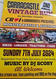 Carracastle’s 2nd annual run will take place this year on Sunday 7th July. All bikes, lorries, tractors and cars are welcome!