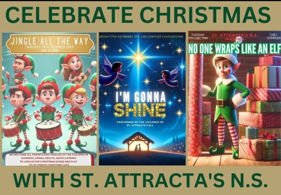 Following these performances on Thursday at 1 pm here in school we will welcome the parents and families of children in Sugradh, Sonas, Saolta, Sasta and Spraoi to join us for Christmas songs and play.