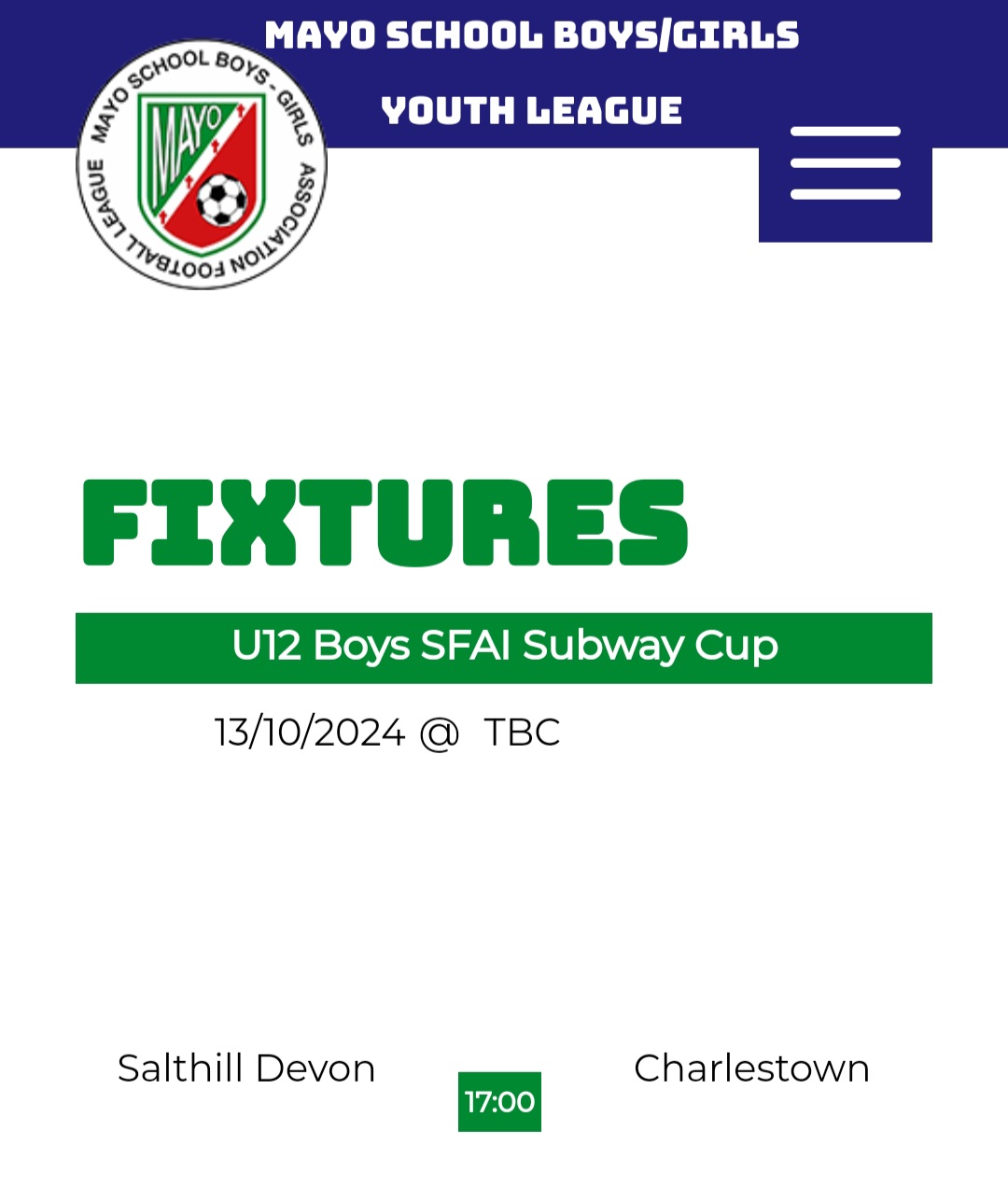 Soccer – U12 SFAI Subway Cup v Salthill Devon(away)